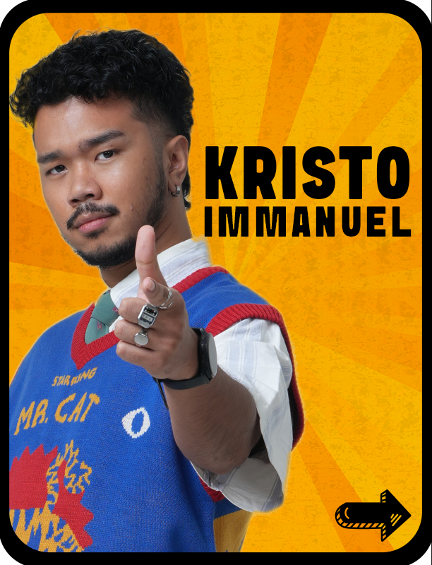 Kristo Immanuel Caesar, yang akrab disapa Kristo Immanuel, lahir di Jakarta pada tanggal 28 Februari 1997, dan merupakan seorang aktor, pembuat konten, dan komedian asal Indonesia. Ia meraih gelar Sarjana dari Jurusan Film Universitas Multimedia Nusantara. Sejak masa kecil, Kristo sudah belajar menirukan ekspresi dan suara dari beberapa karakter kartun terkenal, yang pada akhirnya membuatnya dikenal sebagai impersonator. Dengan bakat besar yang dimilikinya, kini Kristo telah merambah ke industri perfilman Indonesia sebagai seorang aktor berbakat, serta memulai karir di belakang layar. Film pertamanya sebagai penulis dan skenario “Tinggal Meninggal” berhasil membawa pulang banyak penghargaan dan saat ini sedang tayang di NETFLIX.